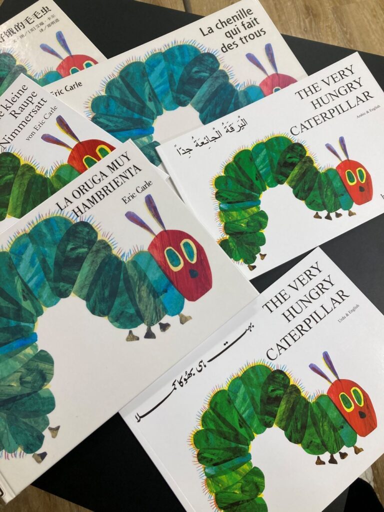 ◆9月13日のスナップです。明日14日も「はらぺこあおむし」は、1時間に1回ずつ、たくさんの国のことばで読み聞かせします。午後からは、アフリカの太鼓とインド舞踊を予定しています。