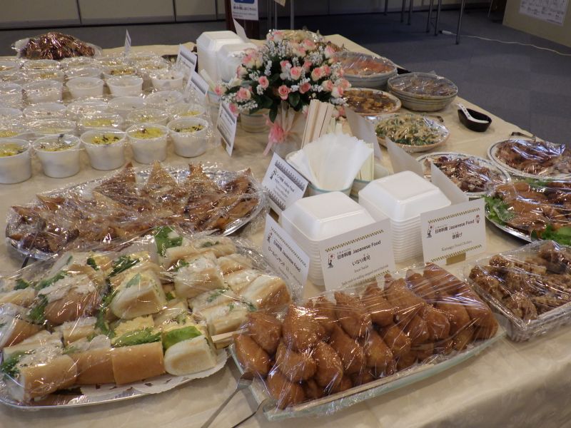 参加(さんか)した人(ひと)と、会話(かいわ)を楽しみます。立食(りっしょく)コーナーでは、いろいろな国(くに)の料理(りょうり)を食べる(たべる)ことができます。