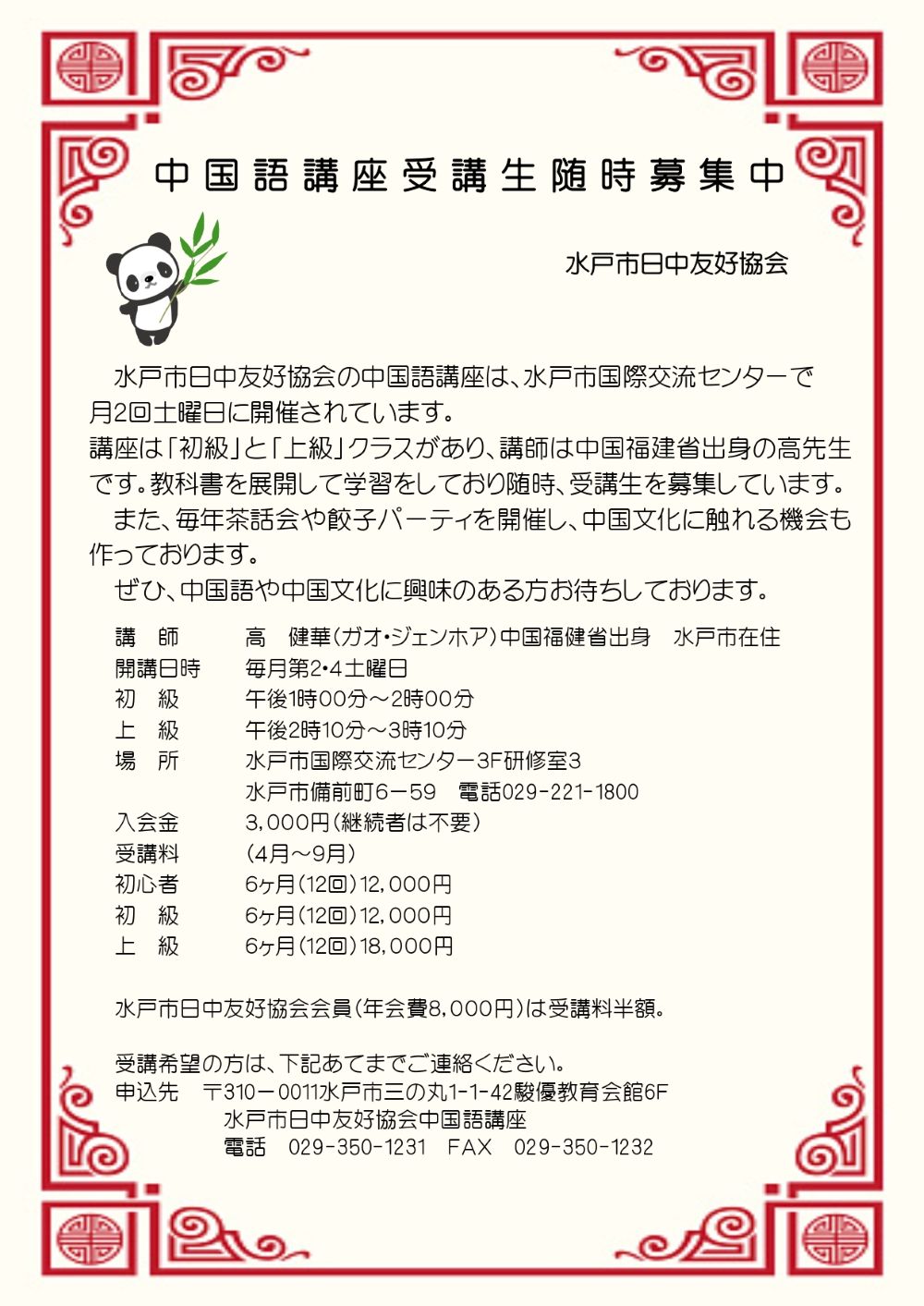 | 入会条件 | 中国語や中国文化に興味のある方 | |